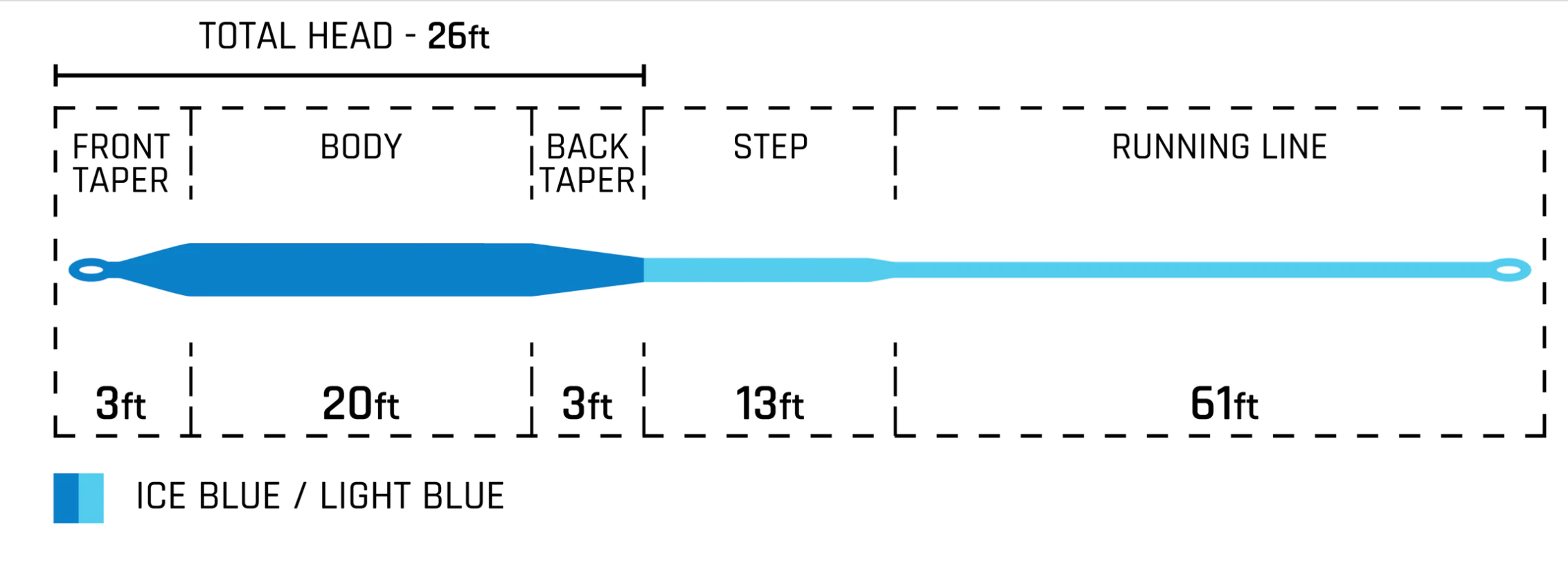 We designed our Cold Salt Striped Bass Blitz line with a short compact head featuring a 20 ft. body that is powerful and easy loading. A shorter 3 ft. front taper easily turns over large striper patterns as well as weighted patterns. The 3 ft. back taper helps load the line quickly with minimal false casting when fish are close and casts need to be as efficient as possible.